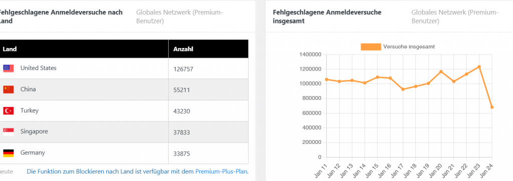 Warnung: Deine Website ist heute 23. Februar – 20:45 Uhr 2023 – über 936 fehlgeschlagenen Anmeldeversuchen ausgesetzt