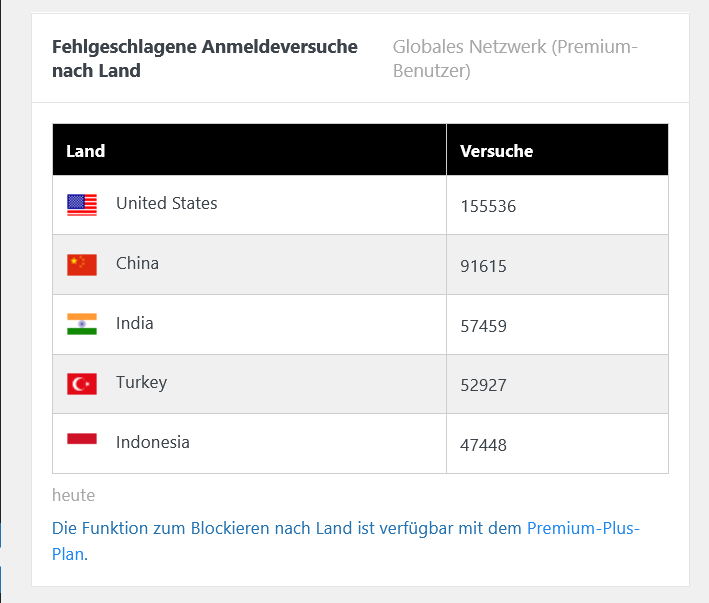 Wartung: Deine Website ist heute 1.August 2022 – 20:35 Uhr – über 481 fehlgeschlagenen Anmeldeversuchen ausgesetzt gewesen.
